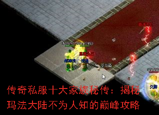 传奇,一款承载无数玩家青春和热血的经典游戏。随着时间的推移,传奇私服也逐渐兴起,为玩家们提供了更丰富的游戏体验。而在这广袤的玛法大陆上,流传着十大家族的秘传攻略,它们是游戏巅峰攻略的精髓,为玩家们指引着通往至高境界的道路。